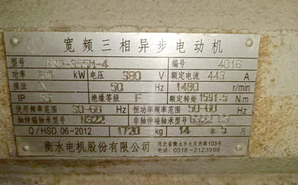 下图为二手大宏立圆锥破电机铭牌,我们可以看到这台圆锥破 配套的是 250kw四级电机