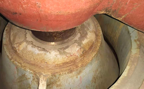 下图二手大宏立PYY300A单缸圆锥破 破碎壁腔体 磨损情况,我们清晰看到破碎机内部磨损状态很轻微。